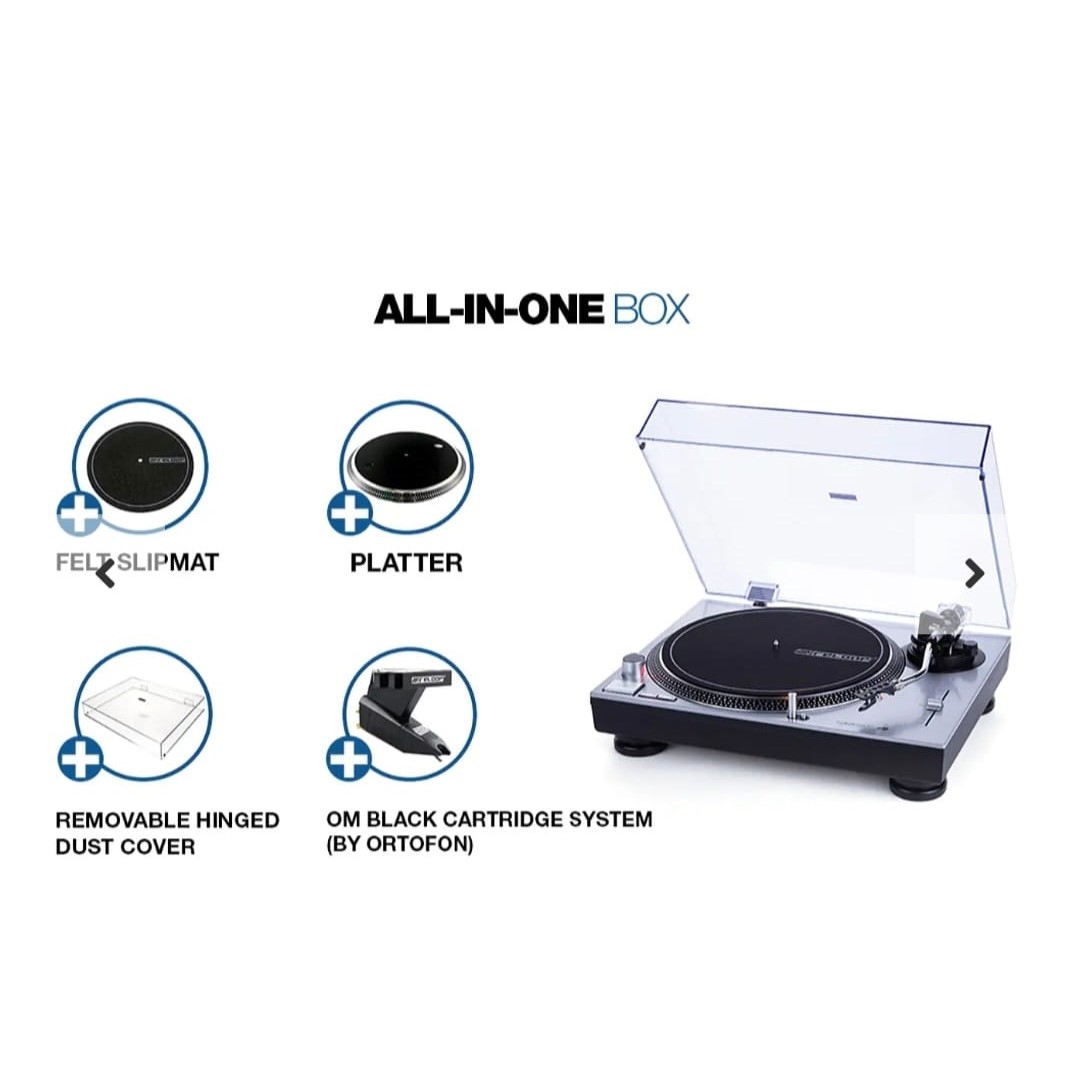 La Reloop RT-3 USB una tornamesa versátil para tu hogar y/o tu estudio DJ. Además del preamplificador Phono integrado, cuenta con una salida de audio que permite la digitalización de discos de vinilo.